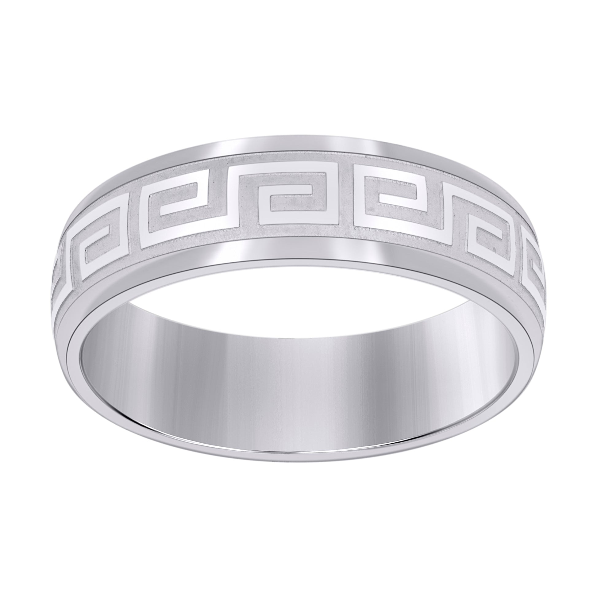 Stainless Steel Mens Greek Key Engraved Size-7 Comfort-fit Fashion Band Ring