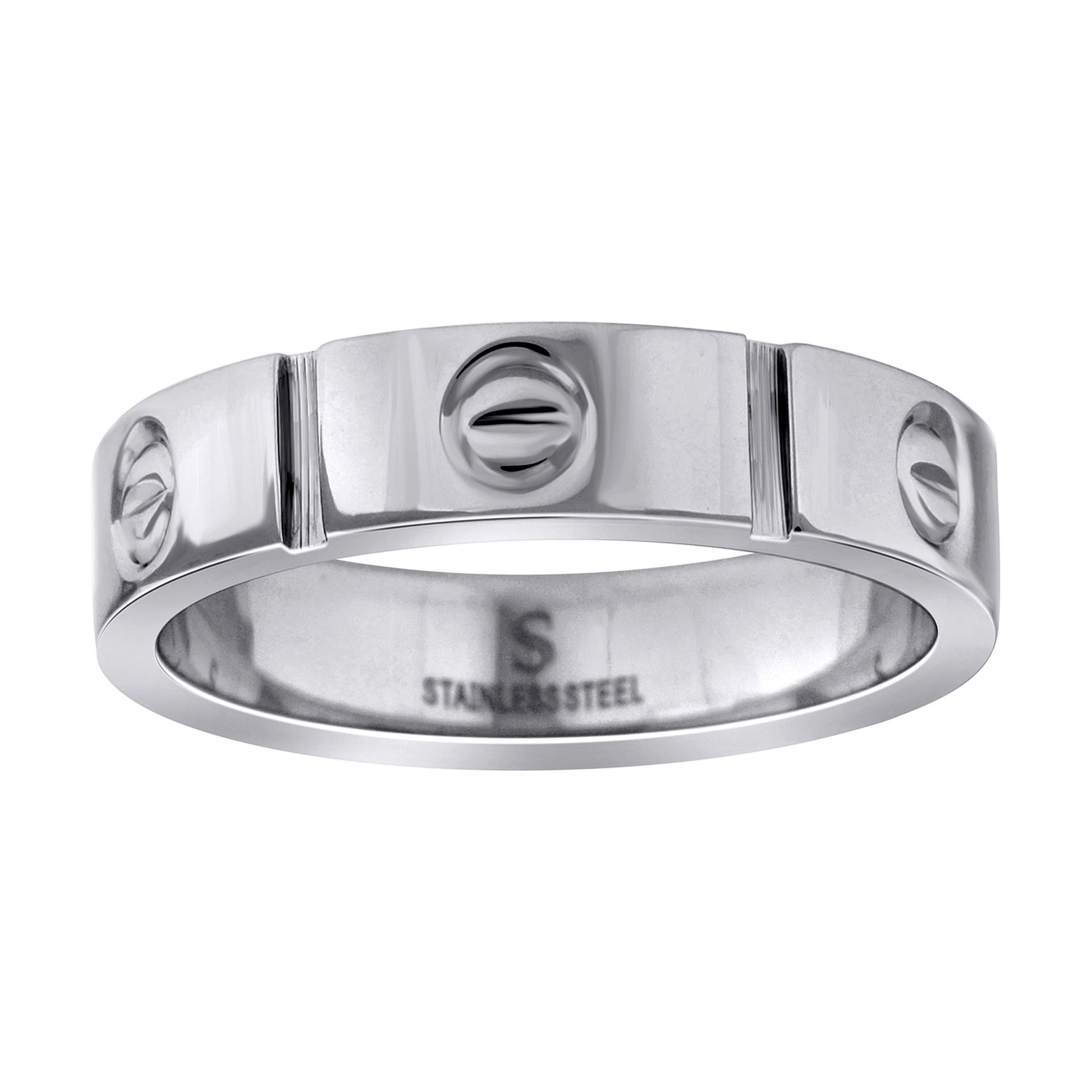 Stainless Steel Mens Grooved Screw Size-7 Comfort-fit Fashion Band Ring