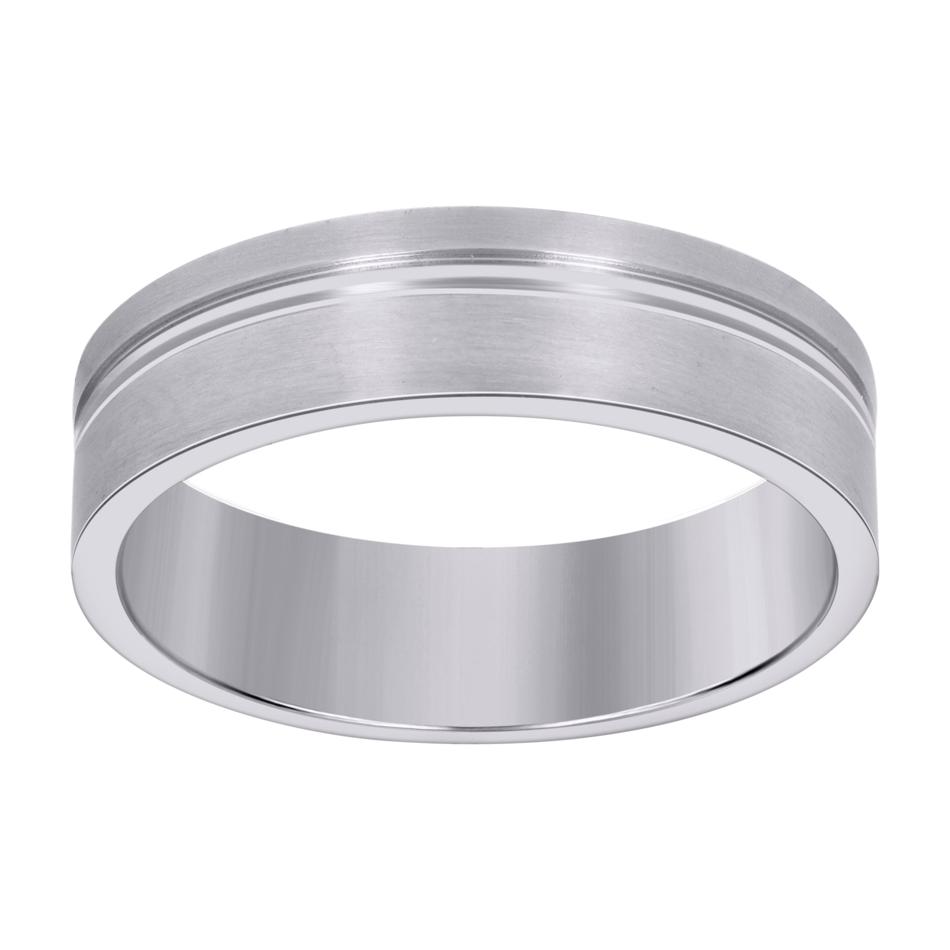 Stainless Steel Mens Brushed Finish With Polished Groove Band Size-7 Comfort-Fit Fashion Band Ring