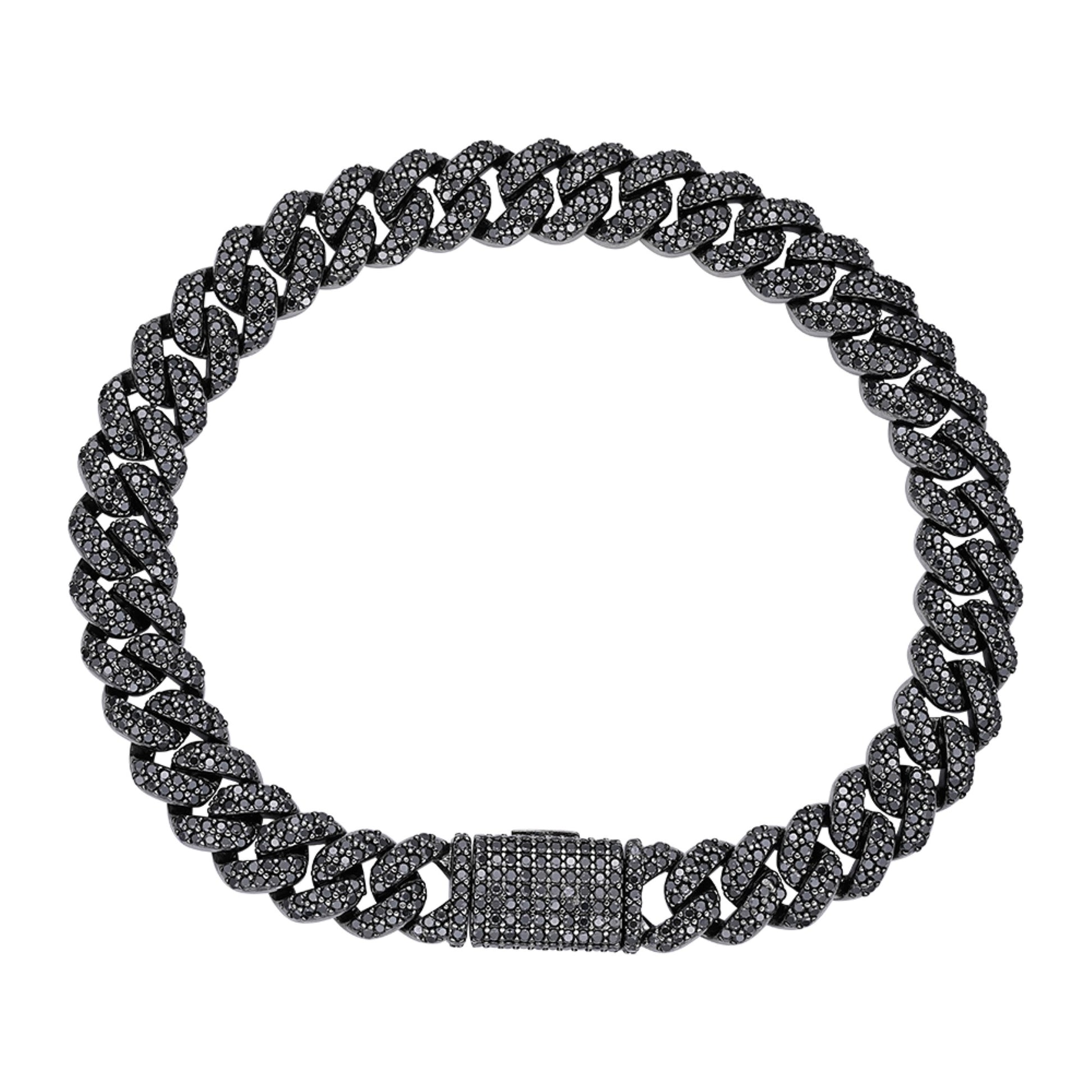 Sterling Silver 8mm Round Black Moissanite Miami Cuban 8 Inch Mens Bracelet BP+BP 5 Cttw
