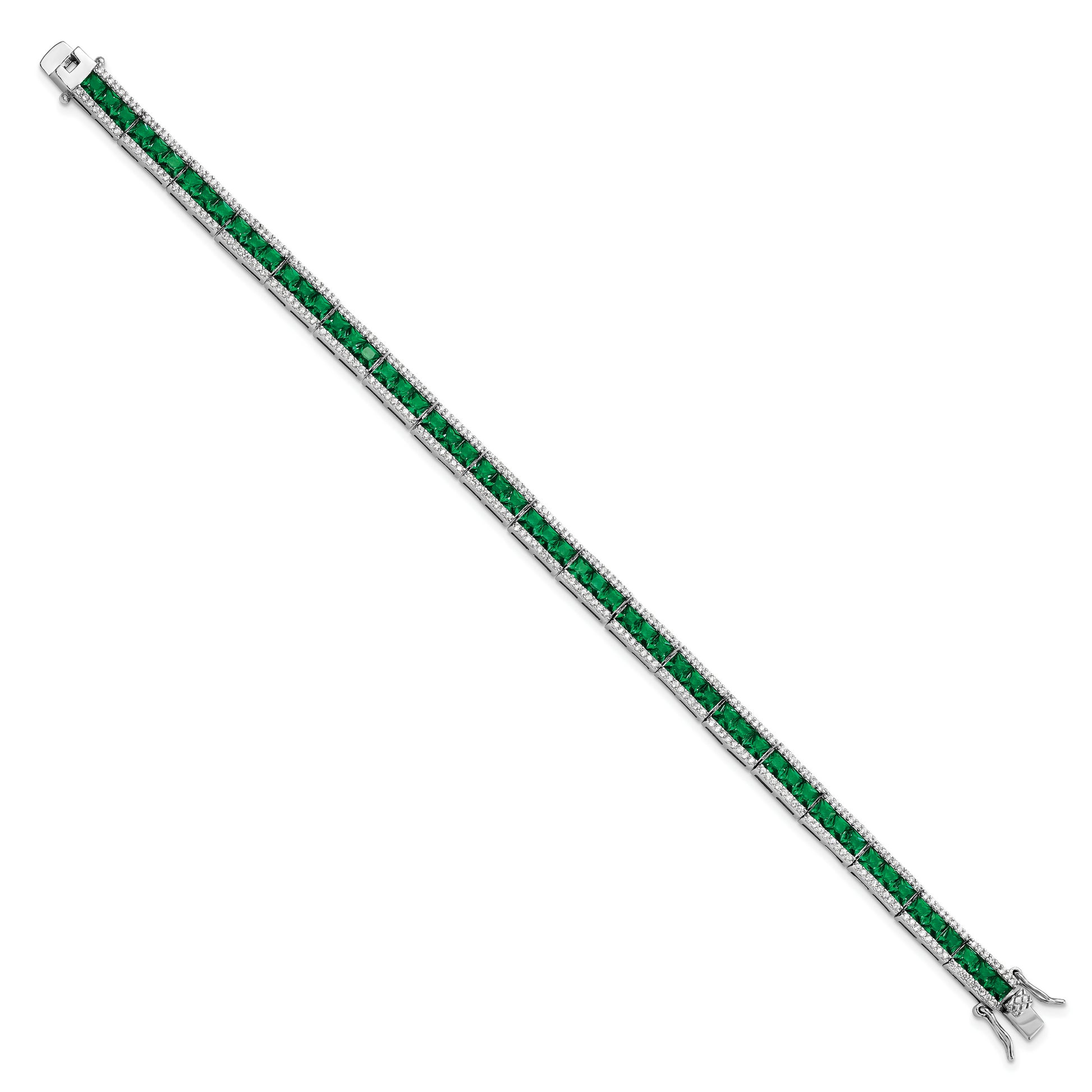 Cheryl M Sterling Silver Rhodium-plated Princess-cut Green Nano Crystal and Brilliant-cut White CZ 7.25 Inch Bracelet
