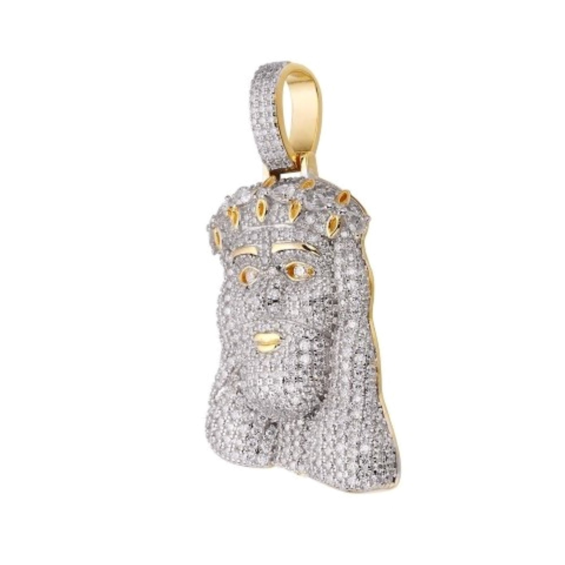Sterling Silver Moissanite Jesus Face Religious Pendant RP+GP 3-1/3 Cttw