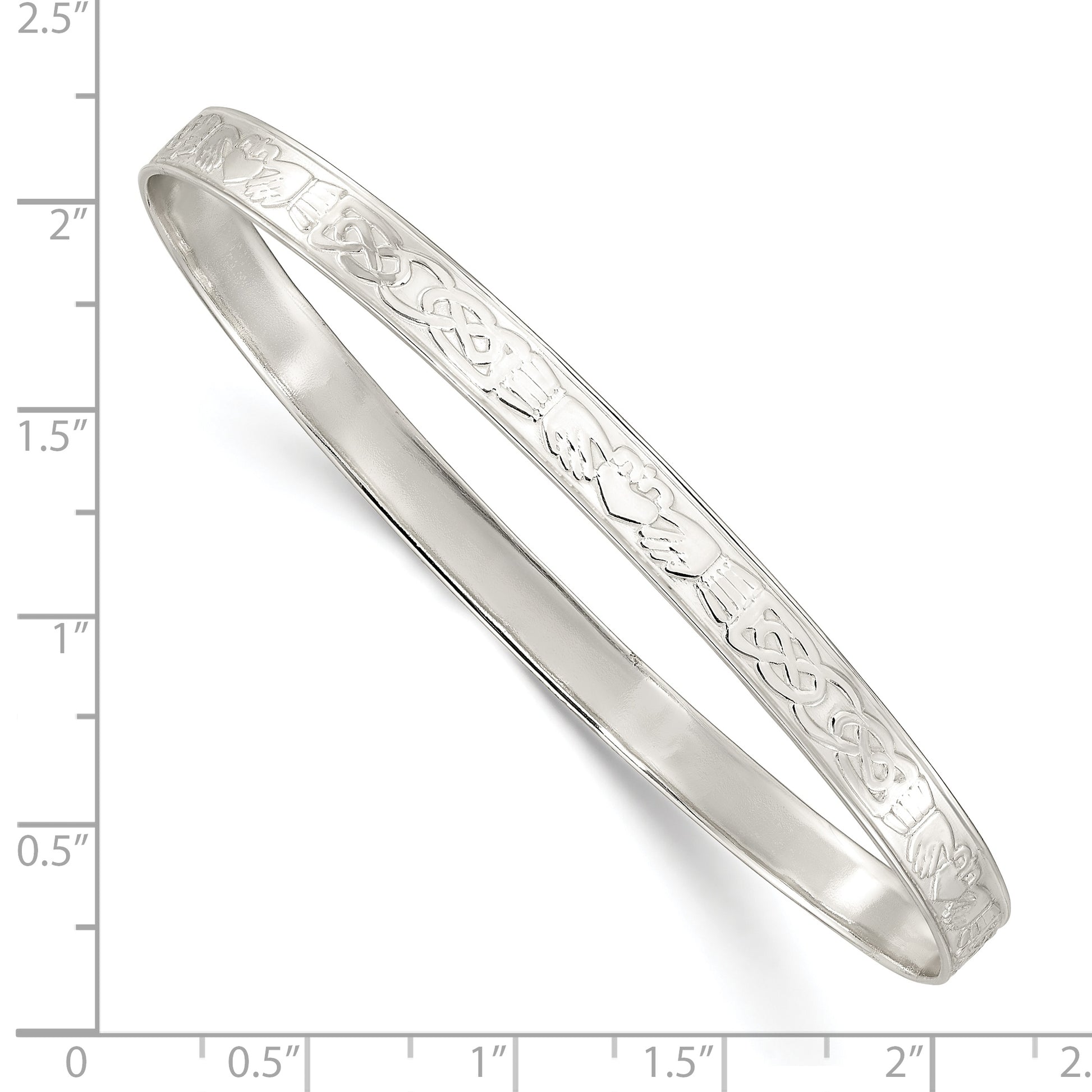 Sterling Silver Polished 5.25mm Claddagh Slip-on Bangle