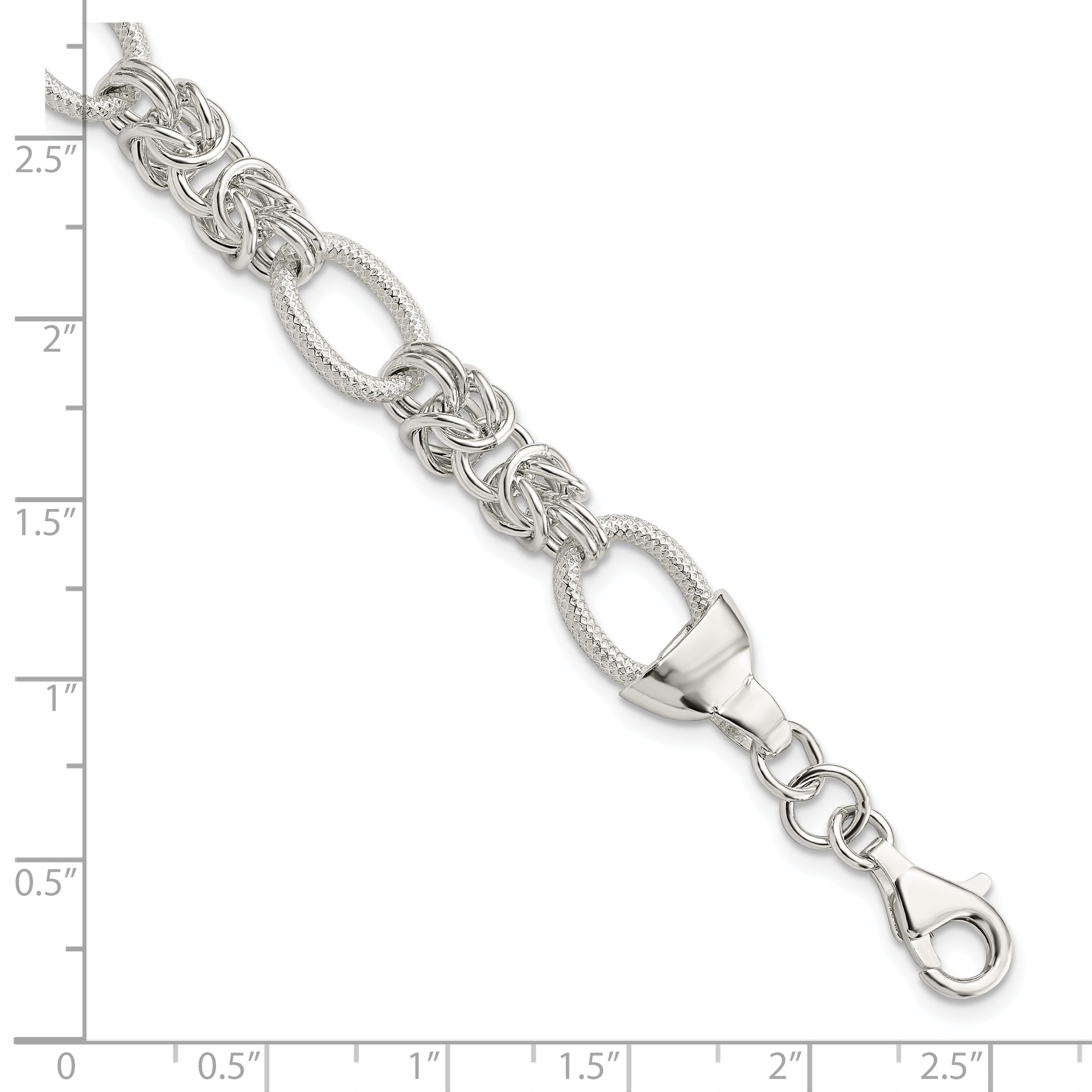 Sterling Silver Polished and Texture Fancy Link 7.5in Bracelet
