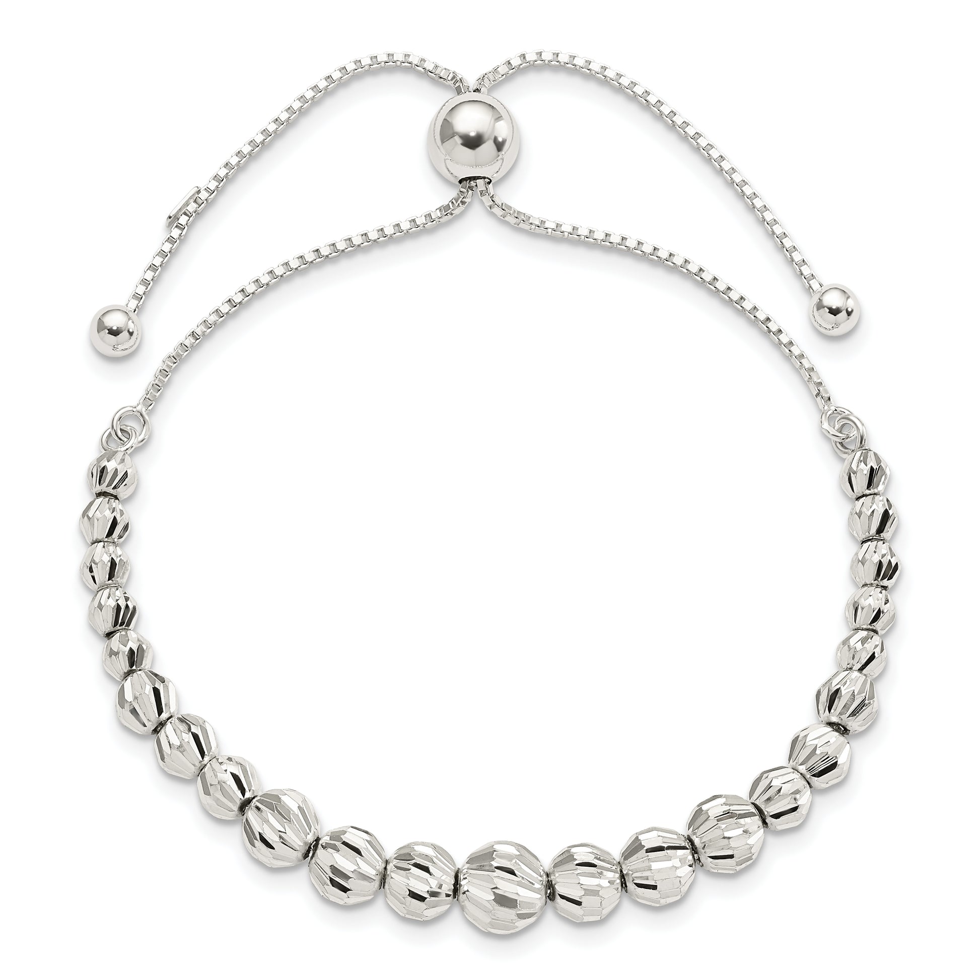 Sterling Silver Polished & D/C Beaded Adjustable Bracelet