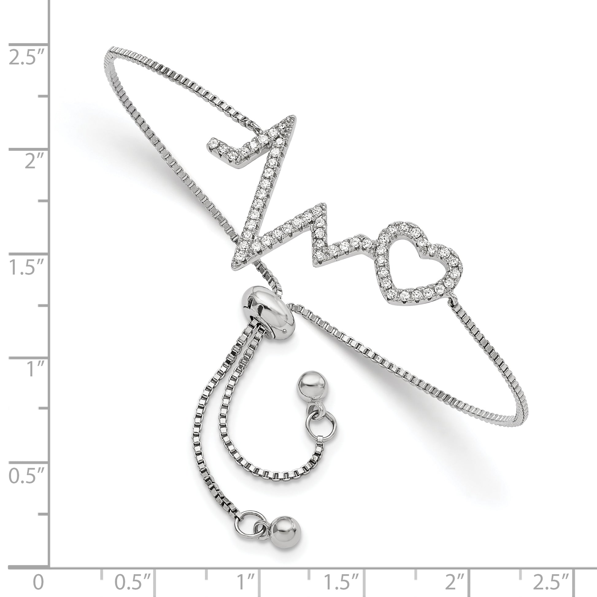 Sterling Silver Polished Rhodium Micro Pav? CZ Heartbeat Adj. Bracelet