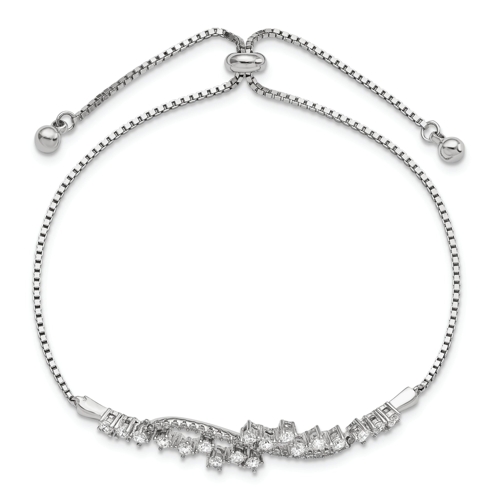 Sterling Silver Polished Rhodium-plated CZ Adjustable Bracelet