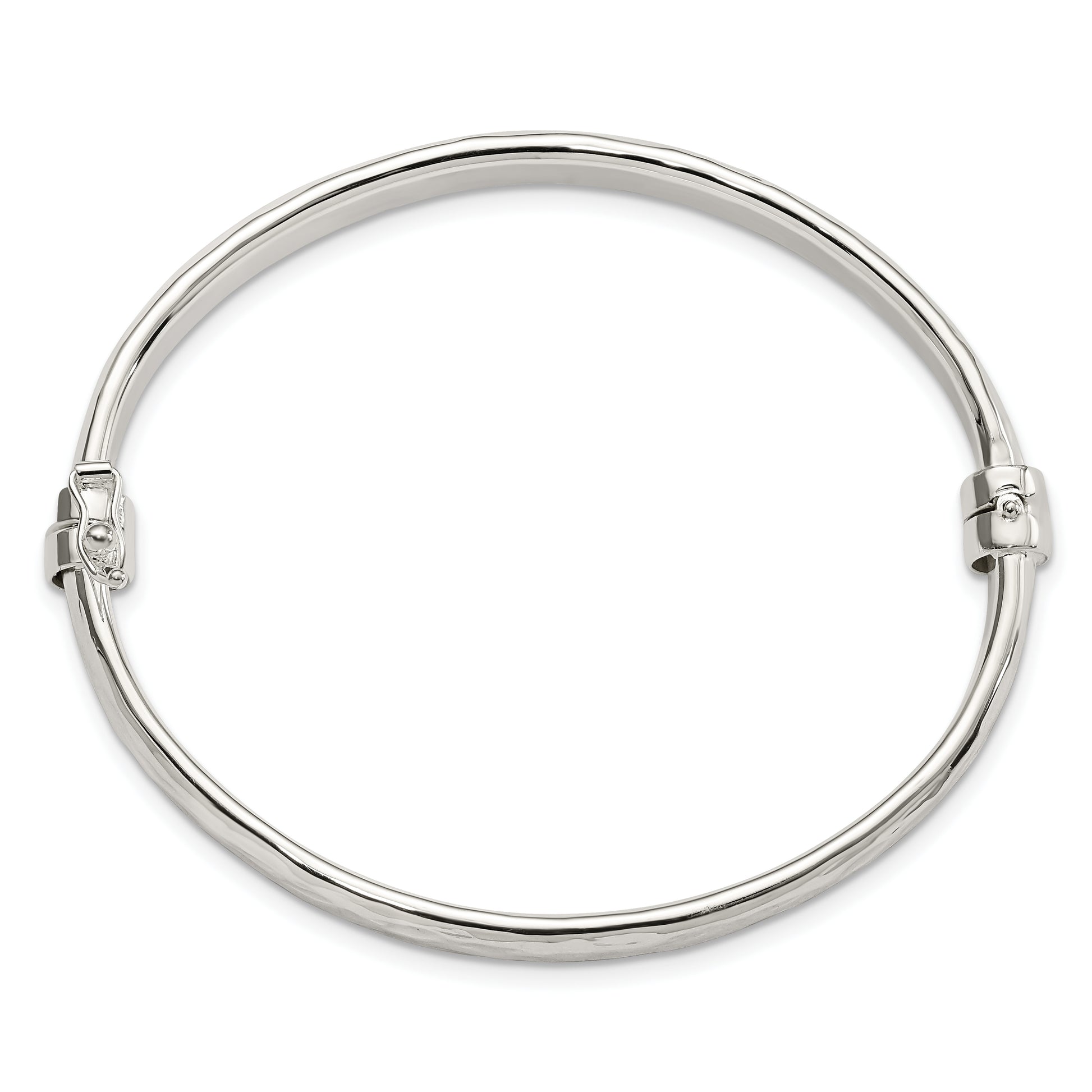 Sterling Silver Polished Textured Hinged Bangle