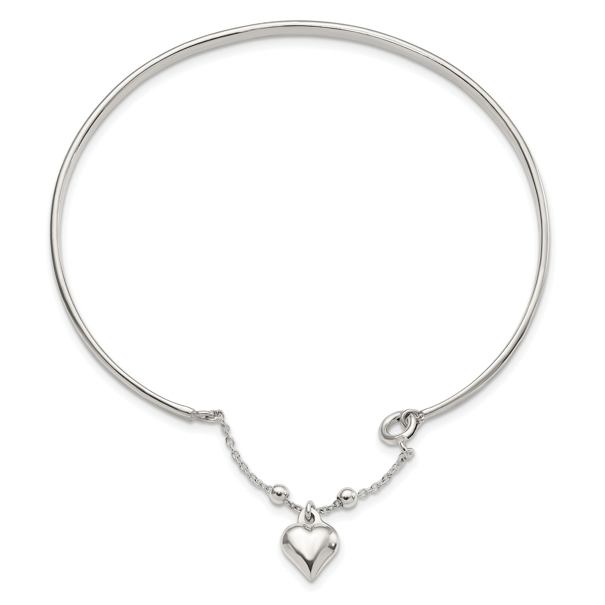 Sterling Silver Puffed Heart Bangle Anklet