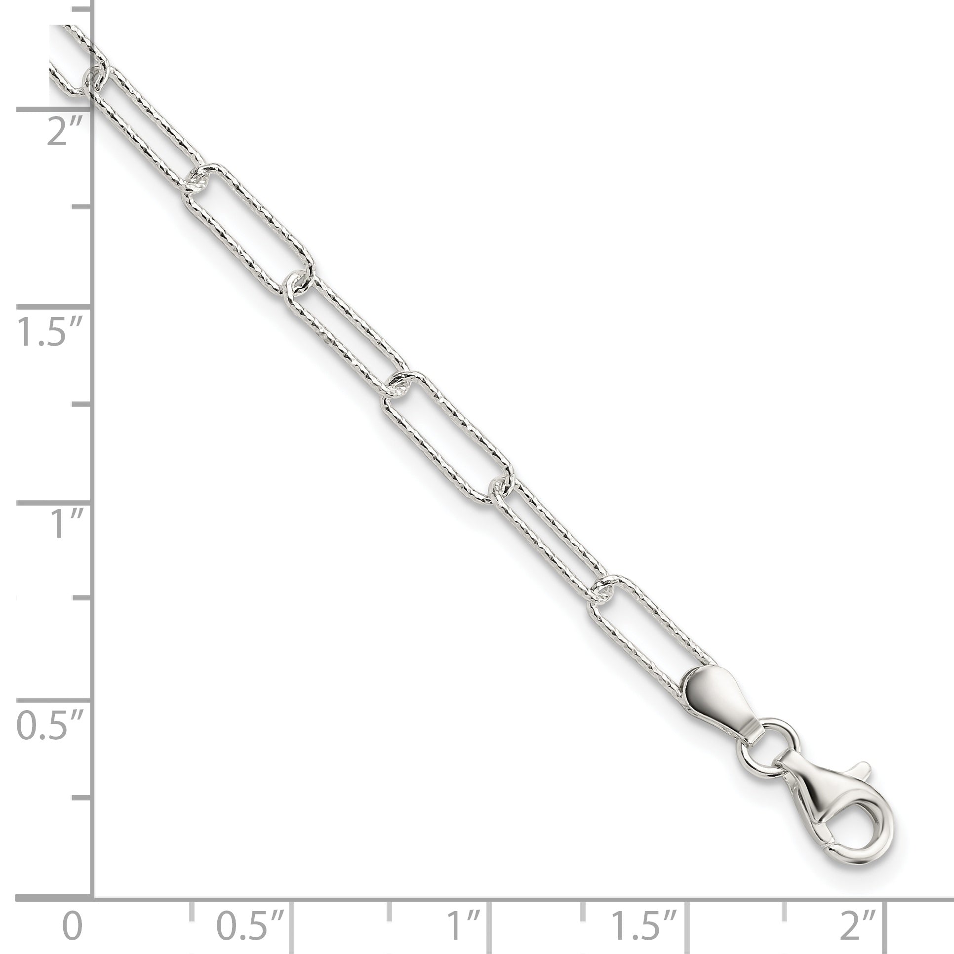 Sterling Silver Rhodium-plated D/C Fancy Link w/.75 in Ext Bracelet