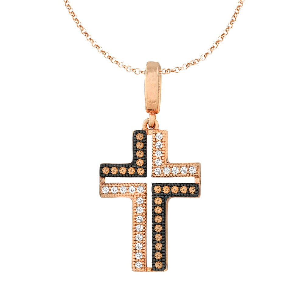 Sterling Silver Rose GP and Black Rhodium with Champagne and Clear CZ Micro Pave Ope