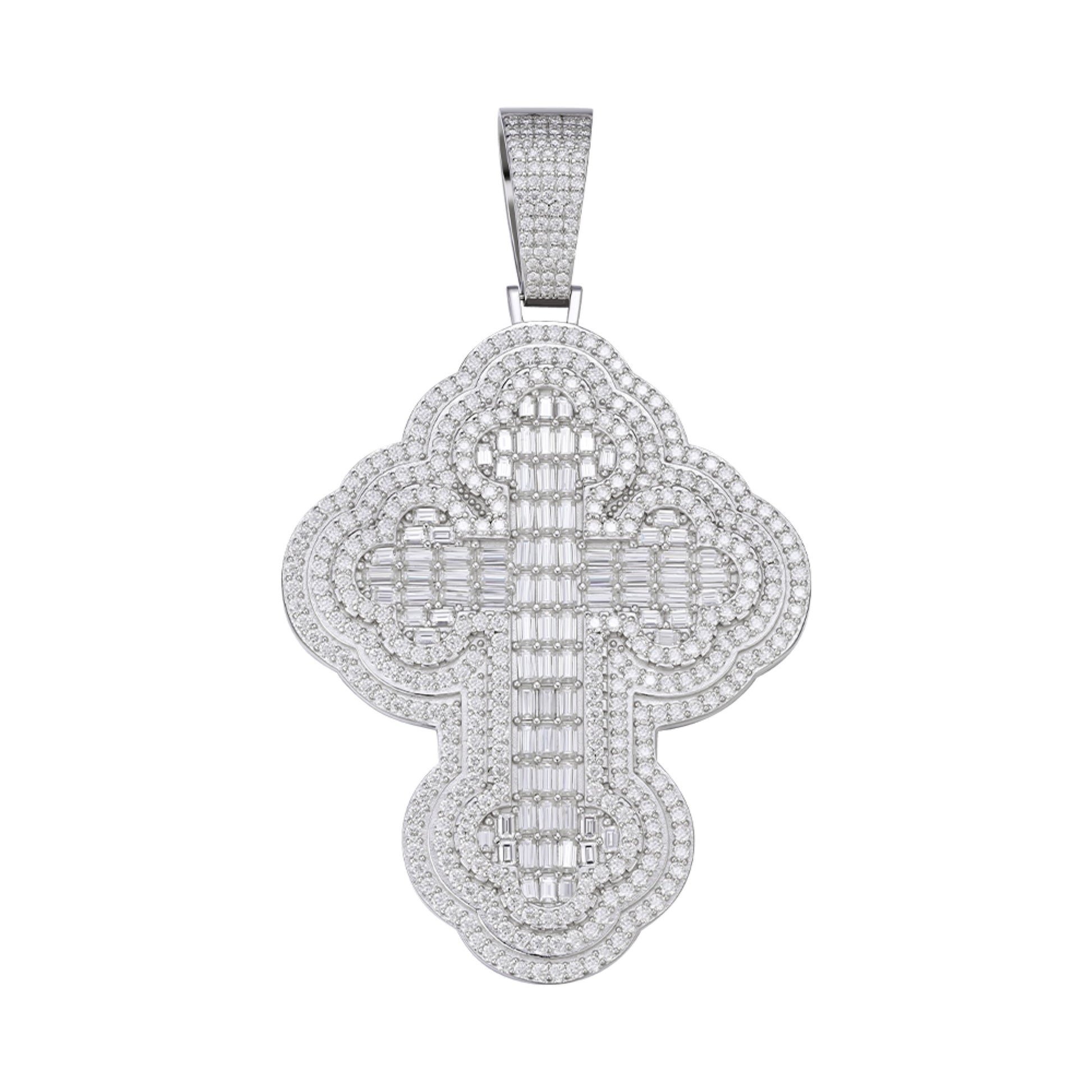Sterling Silver Round Baguette Moissanite Cross Religious Pendant RP 23-1/4 Cttw