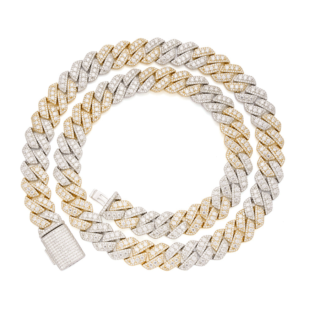 Sterling Silver Round Big Stone in Center Surrounded with Small Stones 12mm Moissanite Cuban Chain 22Inch Necklace RP+GP 30 Cttw
