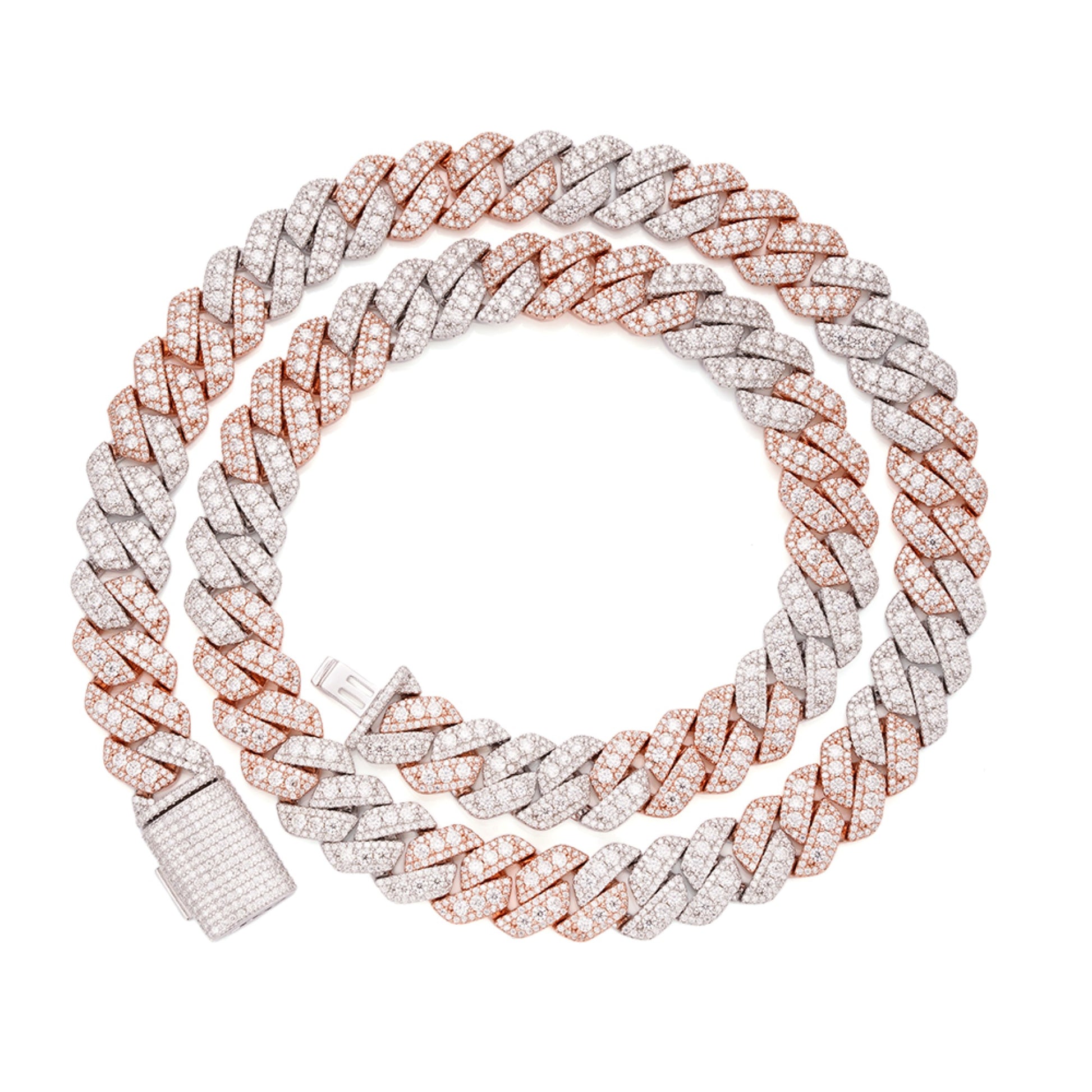 Sterling Silver Round Big Stone in Center Surrounded with Small Stones 12mm Moissanite Cuban Chain 22Inch Necklace RP+PP 30 Cttw