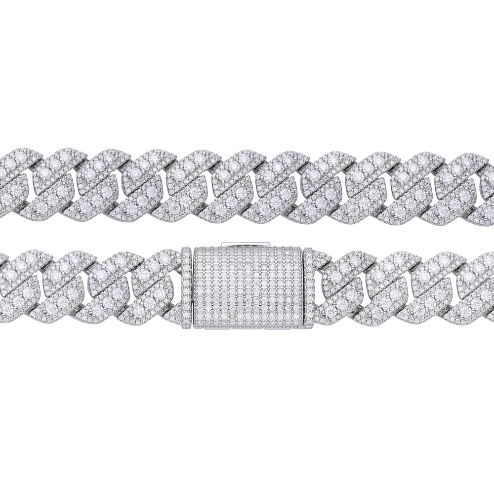 Sterling Silver Round Big Stone in Center Surrounded with Small Stones 14mm Moissanite Cuban Chain 22Inch Necklace RP 34 Cttw