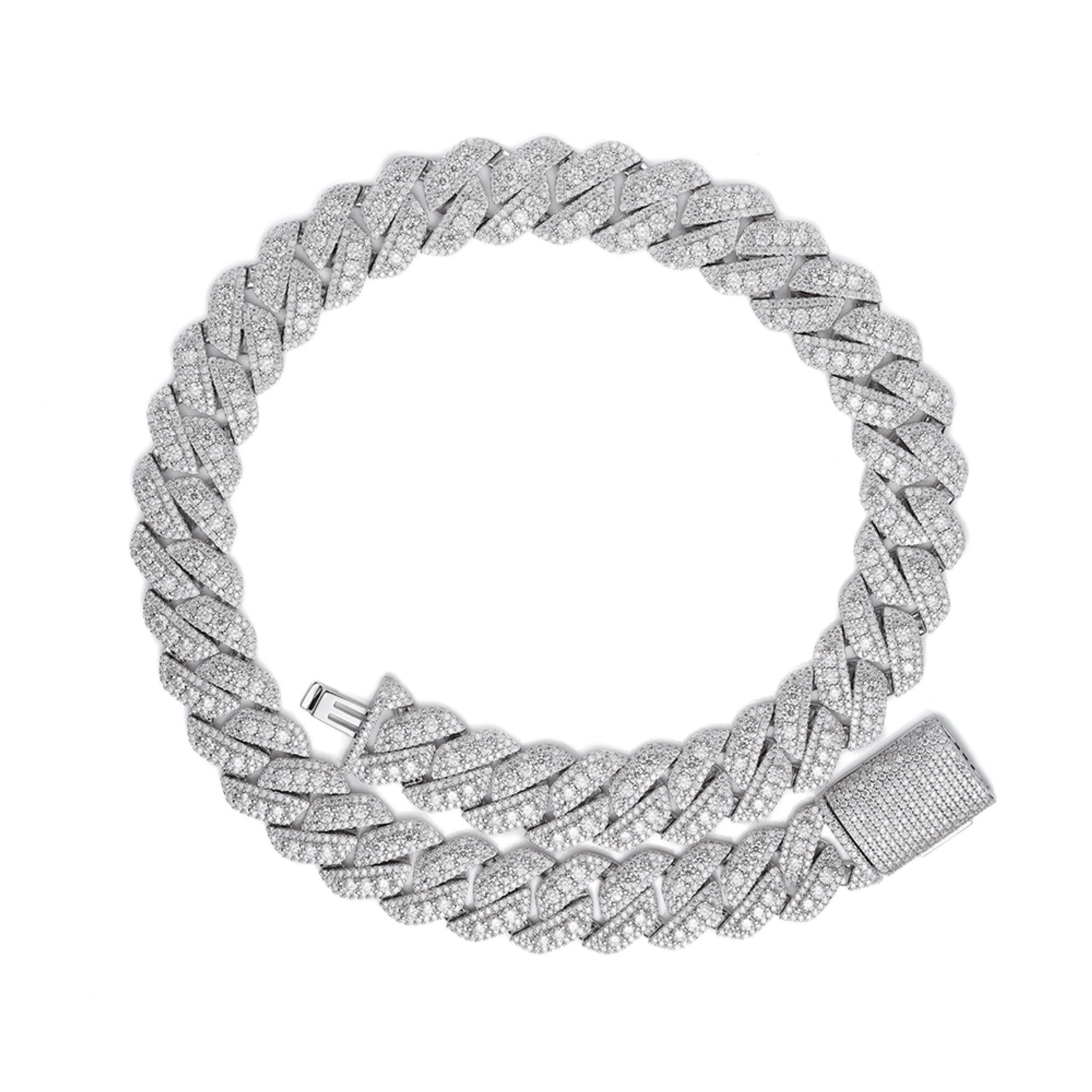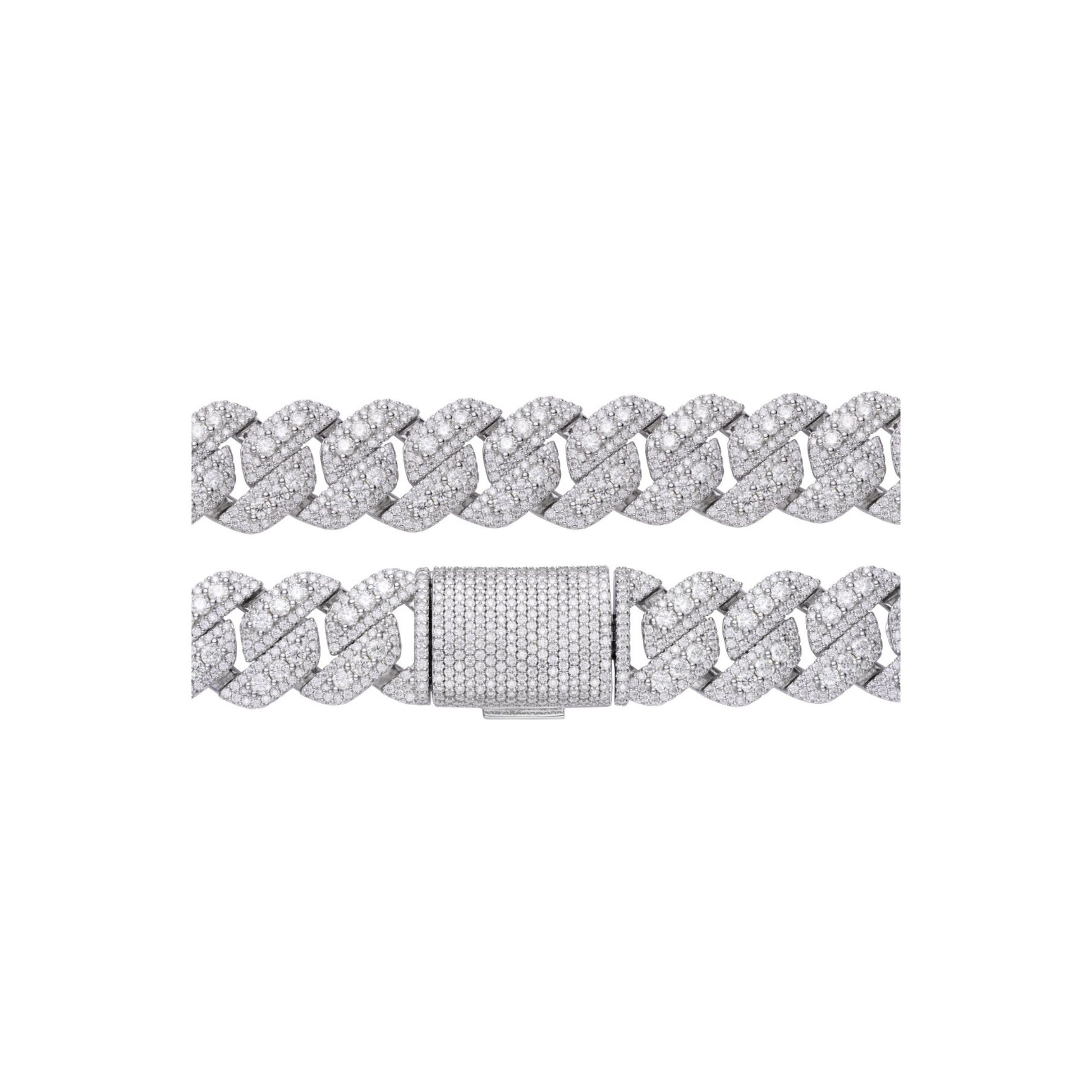 Sterling Silver Round Big Stone in Center Surrounded with Small Stones 20mm Moissanite Cuban Chain 22Inch Necklace RP 55-5/8 Cttw