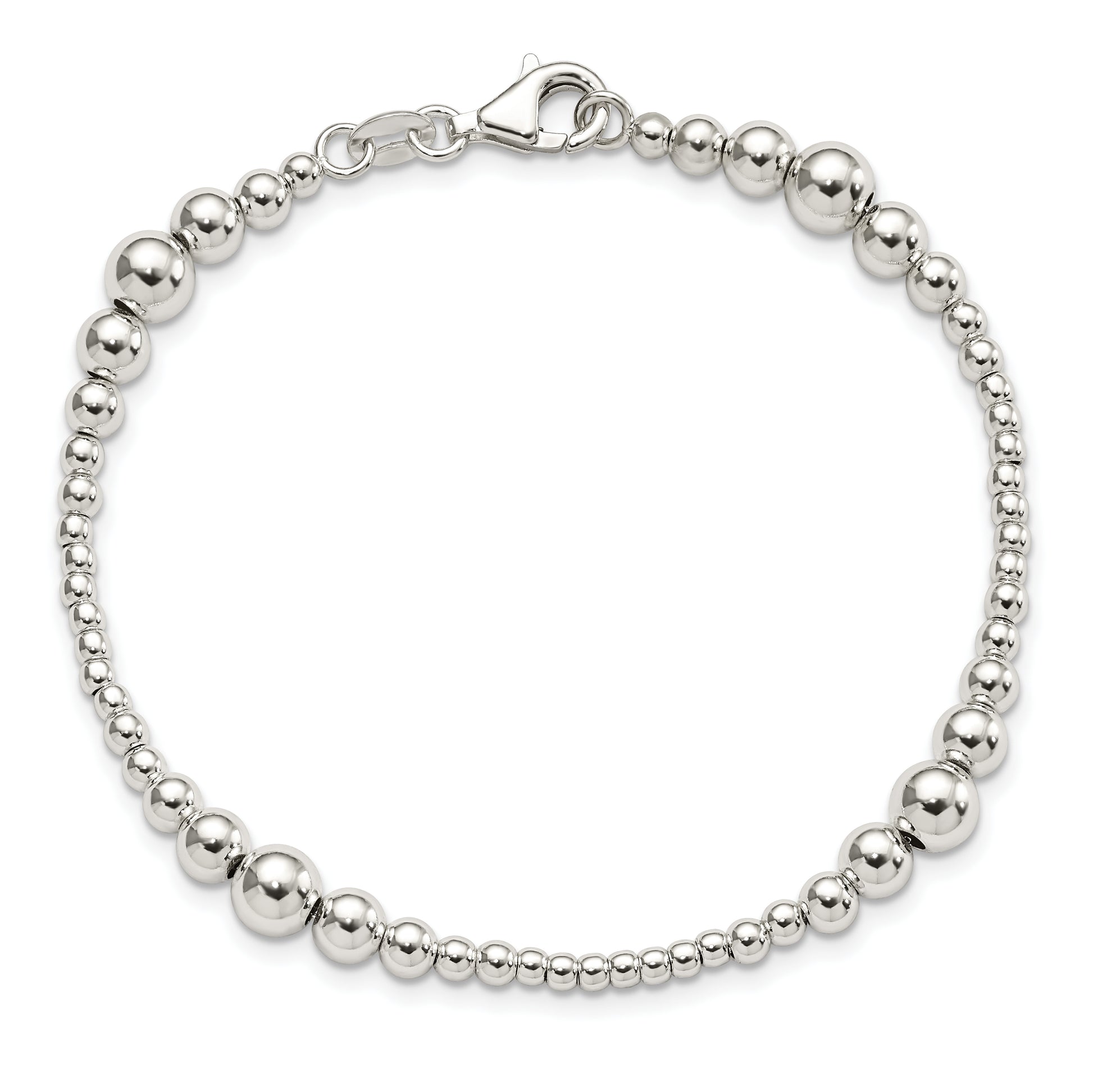 Sterling Silver Round Graduated Beaded Bracelet