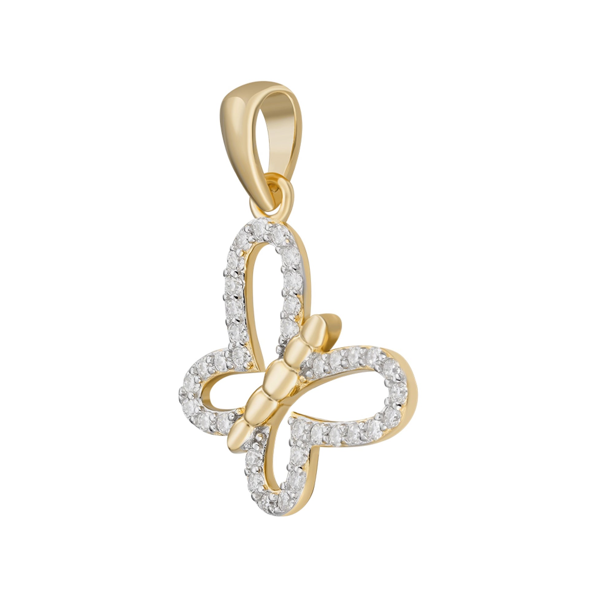 Sterling Silver Round Moissanite Butterfly Animal Pendant RP+GP 1/3 Cttw