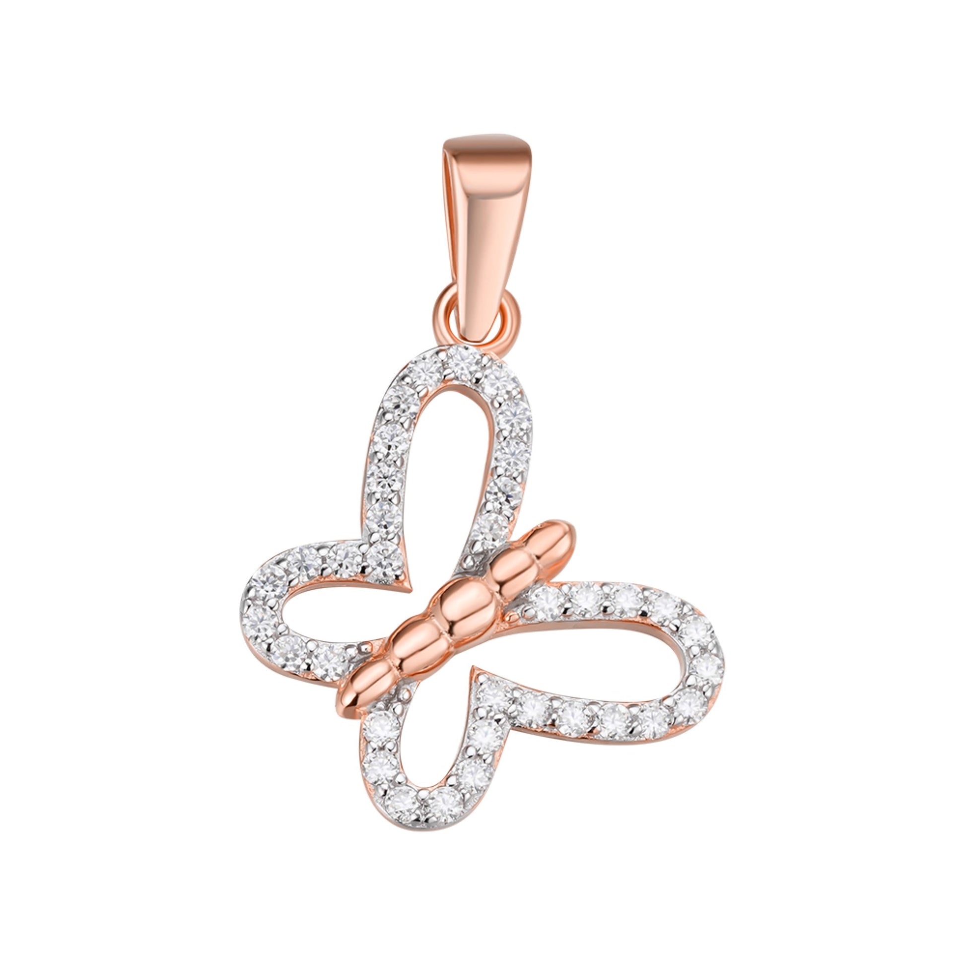 Sterling Silver Round Moissanite Butterfly Animal Pendant RP+PP 1/3 Cttw