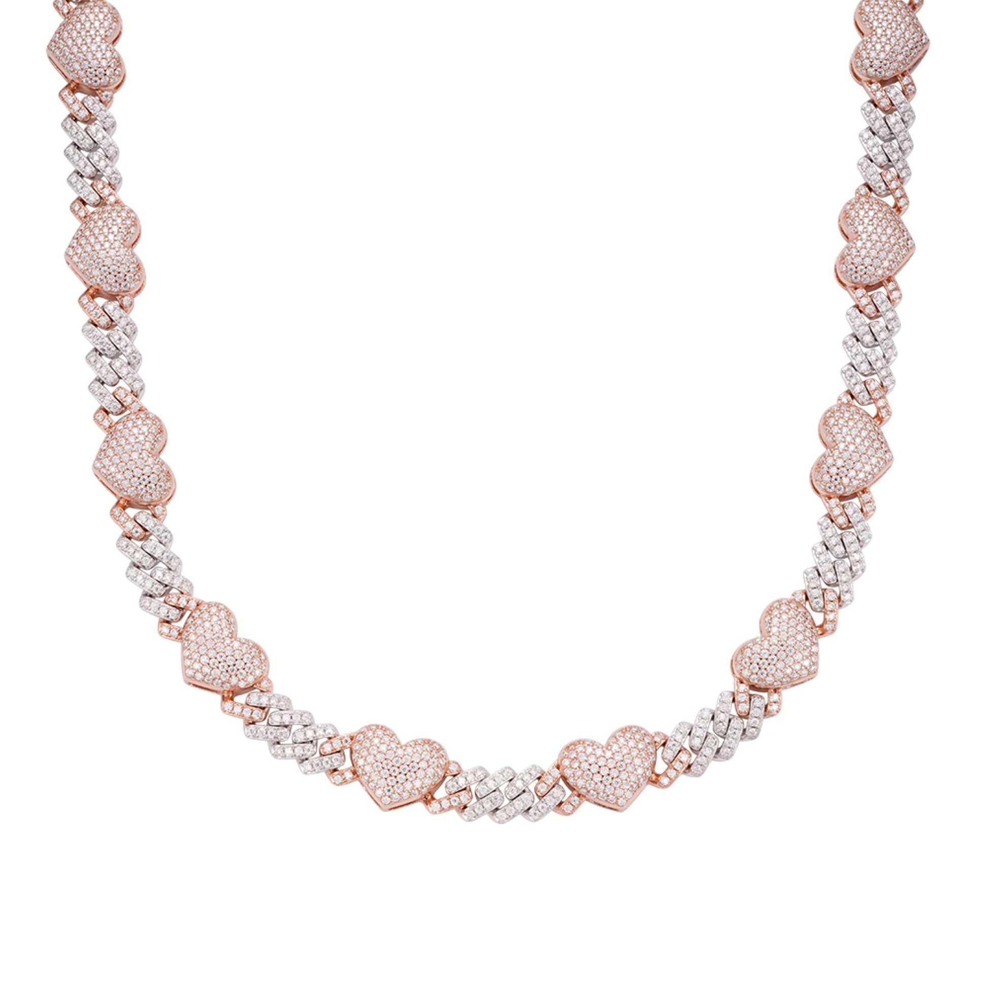 Sterling Silver Round Moissanite Cuban Heart Link Designer 18 Inch Necklace RP+PP 15-1/2 Cttw