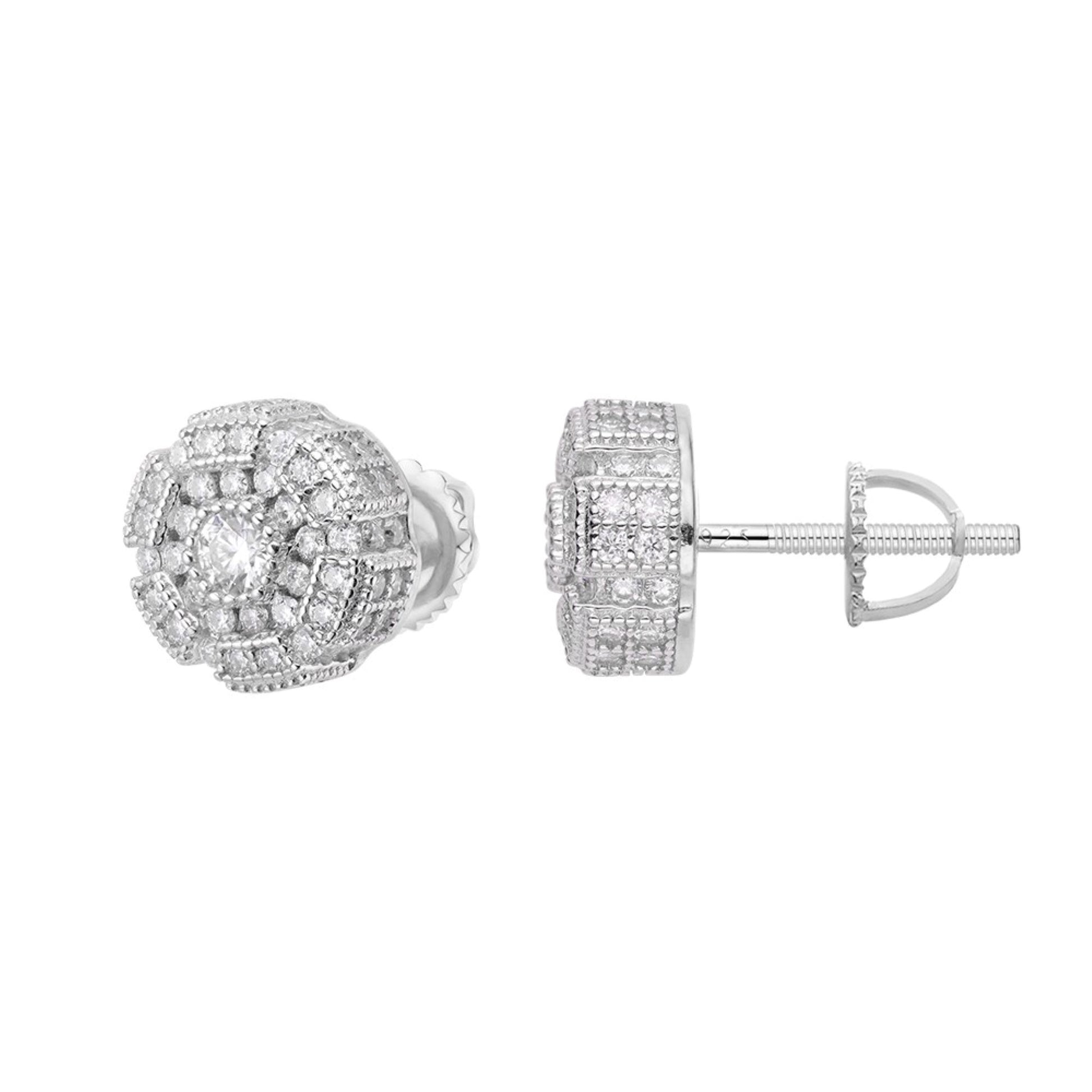 Sterling Silver Round Moissanite Designer Stud Earrings RP 1-1/3 Cttw