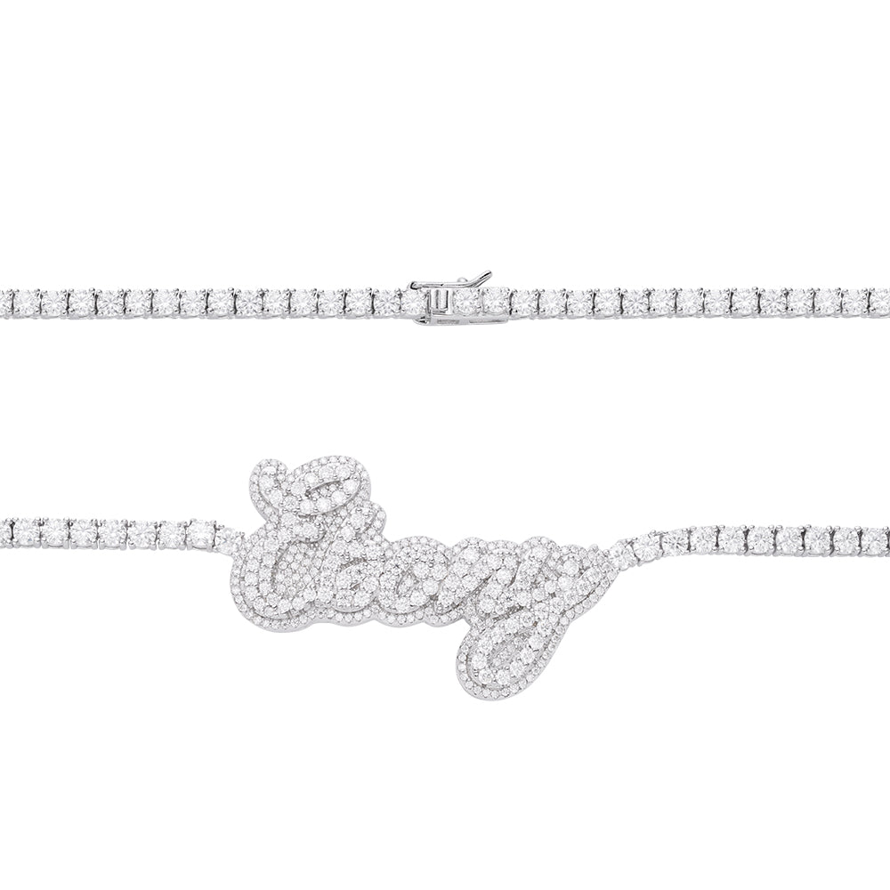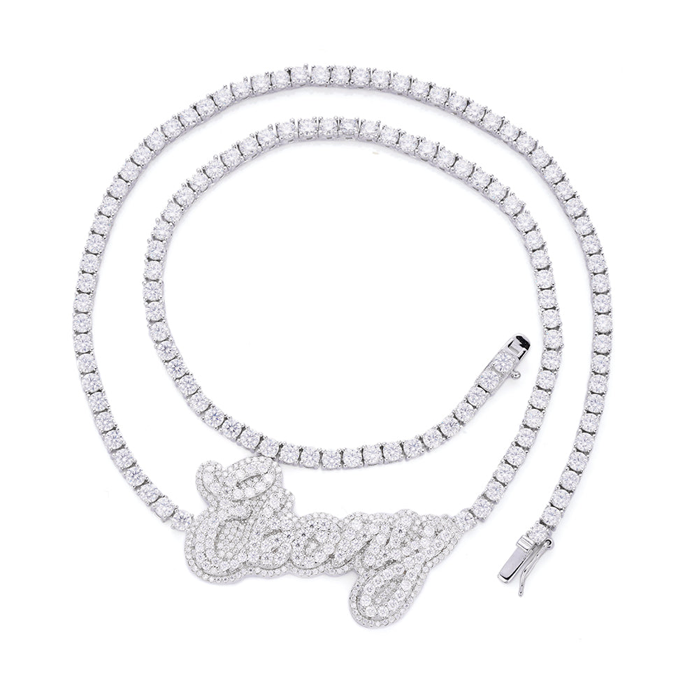 Sterling Silver Round Moissanite Ebony Word Designer 18 Inch Necklace RP 16-1/8 Cttw
