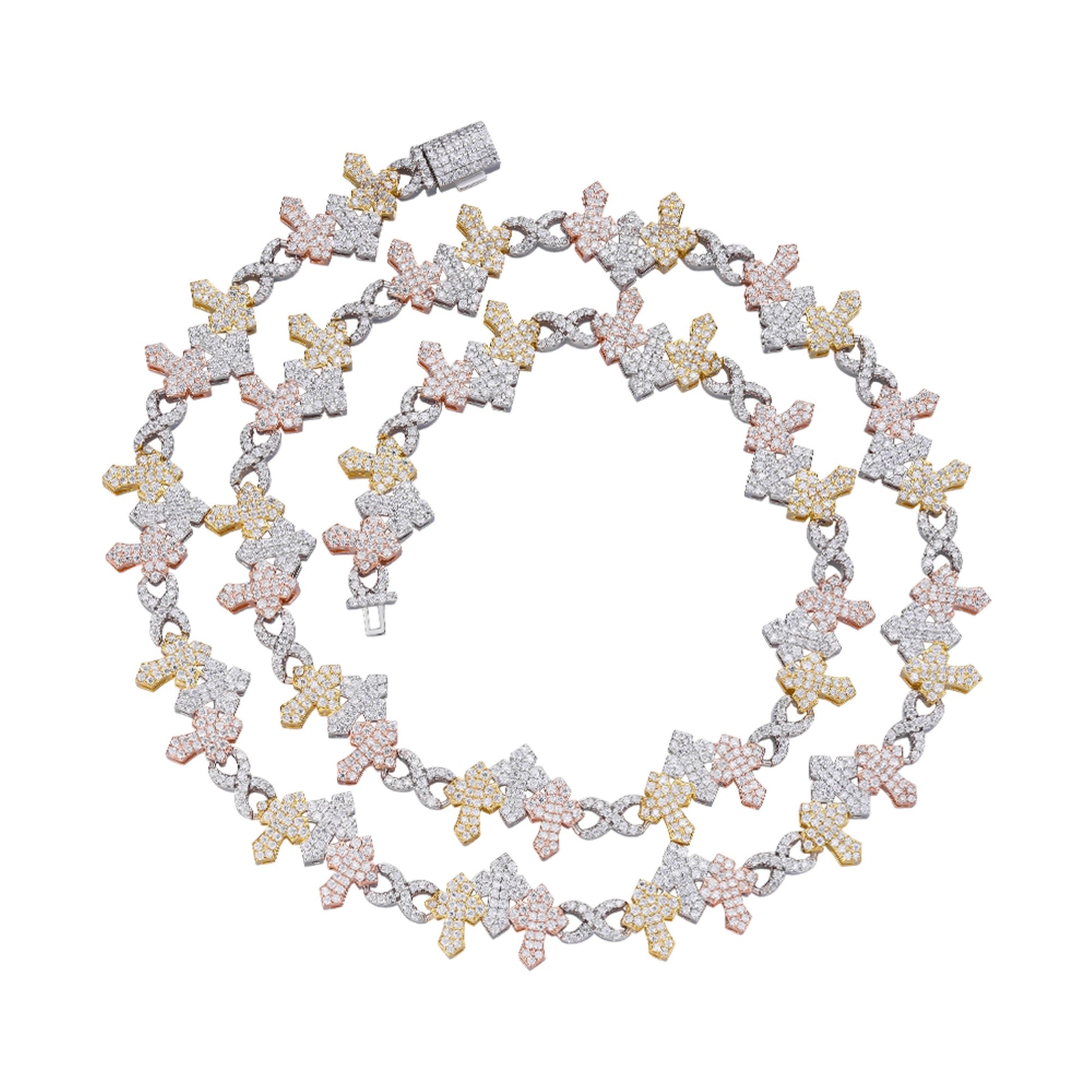 Sterling Silver Round Moissanite Infinity 3 Cross 22 Inch Religious Necklace RP+GP+PP 9-5/8 Cttw