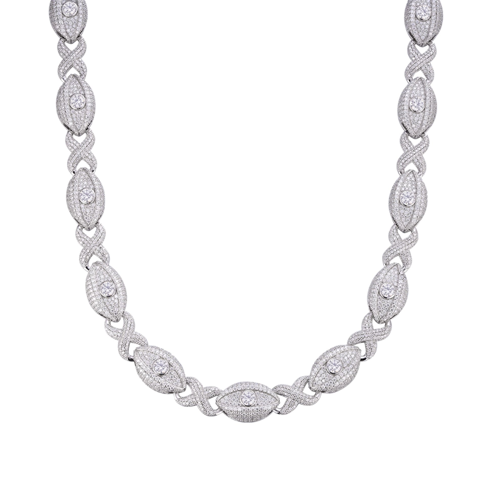 Sterling Silver Round Moissanite Infinity Eye 22 Inch Designer Necklace RP 38-1/2 Cttw