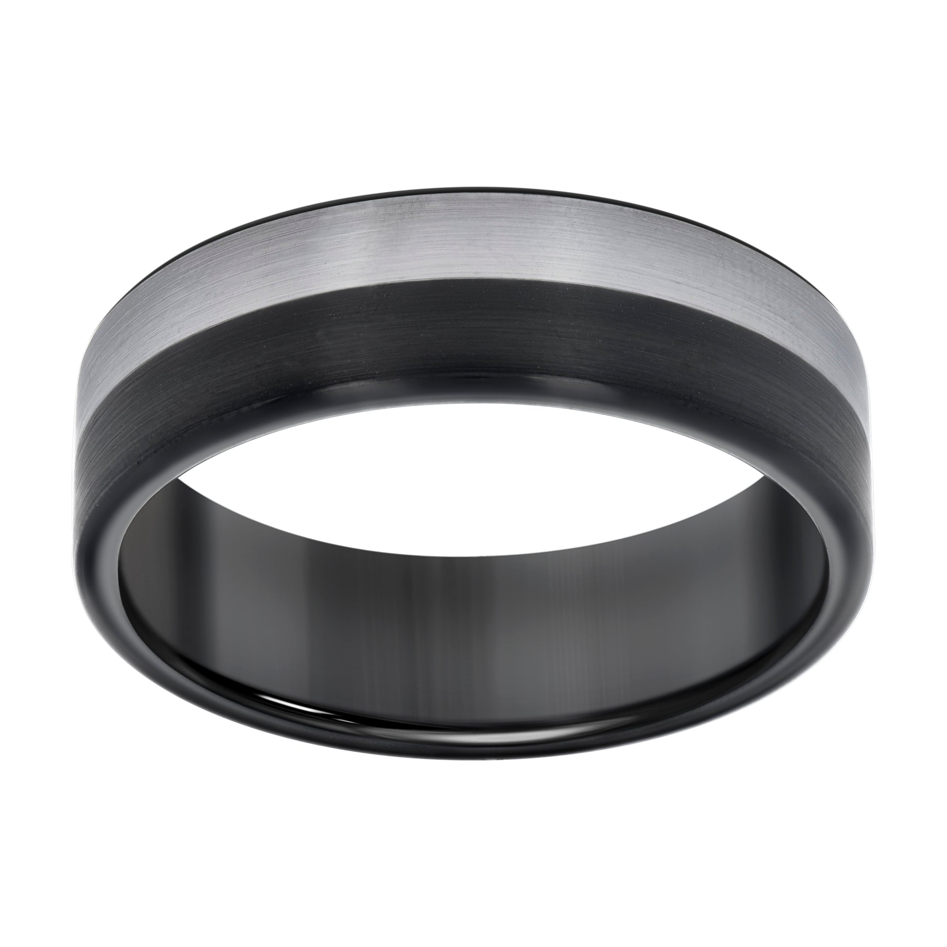Tungsten Black & White Mens Comfort-fit Wedding Band